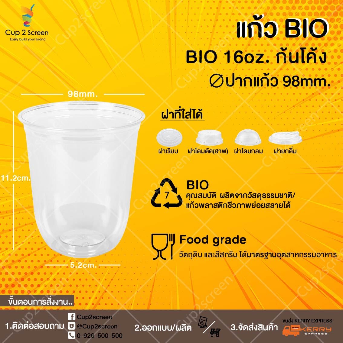 แก้วแคปซูล BIO 16oz. ปาก 98mm. (ก้นโค้ง) ราคา 3,000 บาท